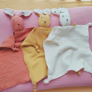Lapin plat doudou en gaze de coton