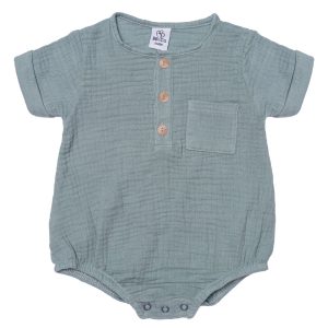 Barboteuse garçon manches courtes – Gaze de coton Vert de gris
